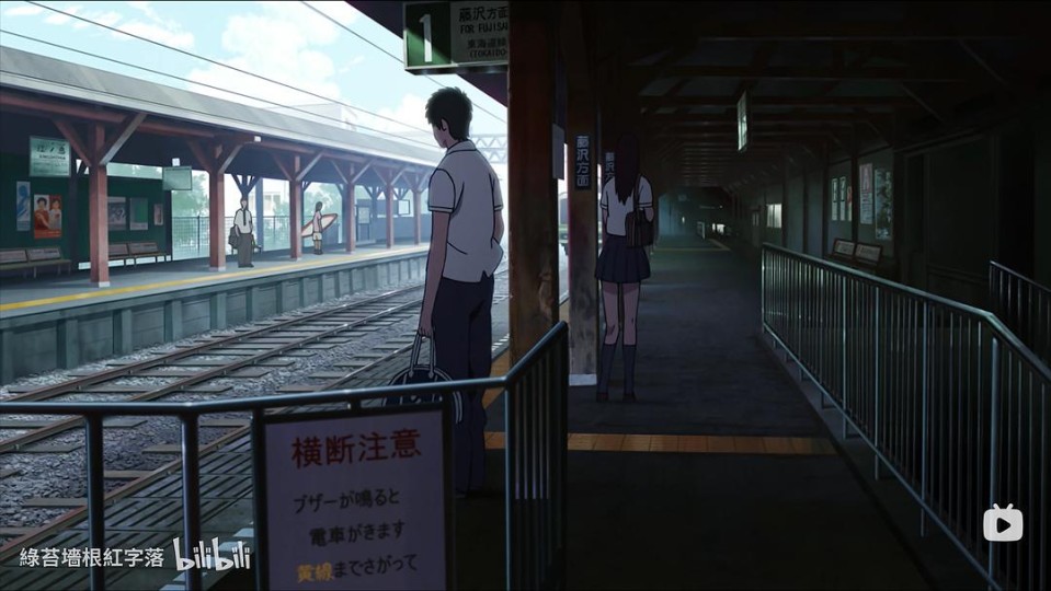 要说还有什么可以再找找,那就是最后烟花离别时女主角所站立的草地吧。男主角一家出发离开时方向和逃学一样是向西南。列车靠右出发,男主角坐在左侧,本应会看到对侧铁轨,但画面里并非如此。